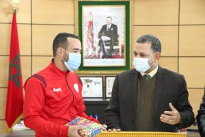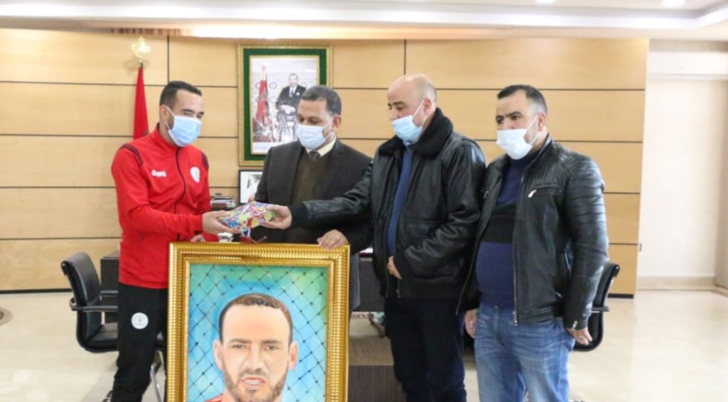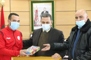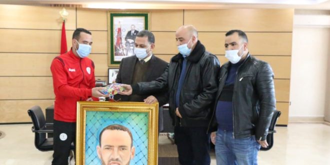 كرم حسن بن الماحي عامل جلالة الملك على إقليم جرسيف، اليوم الثلاثاء 04 يناير الجاري، حارس المنتخب الوطني المغربي لمبتوري الأطراف “عفرة العلامي”.