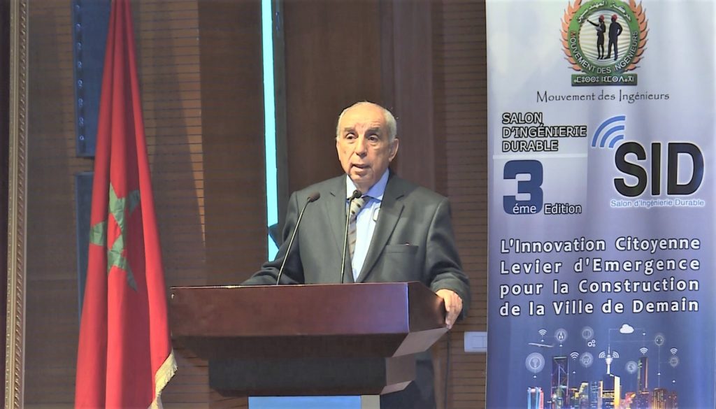 و في كلمته أبرز الرئيس الشرفي لحركة المهندسين السيد ادريس مرون وزير التعمير وإعداد التراب الوطني الأسبق، الدور الأساسي للمهندسين في التنمية المستدامة، مسجلا أن مفهوم الاستدامة ينبغي اعتماده في جميع القطاعات والمجالات، معتبرا أن موضوع الملتقى ذو أهمية قصوى ويدخل فيه كل ما هو تشريعي وتنظيمي وتقني وثقافي من أجل بناء مدن ذكية جديدة تسهل فيها الحياة وتتوفر فيها كل المرافق الأساسية حتى يتحقق العيش في فضاء لائق.