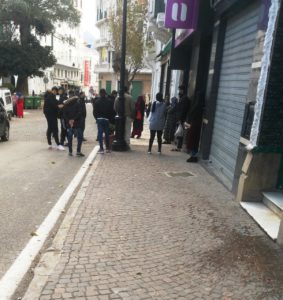 وإلى جانبها تعرف وكالة الاتصالات أنوي” اجتماع العشرات من المواطنين من أجل الحصول على خدمات هذه الوكالة أو تأدية الفواتير كما هو ظاهر في الصورة للوكالة المذكورة، حيث يظهر غياب تام للسلطة المحلية في تنظيم المواطنين.