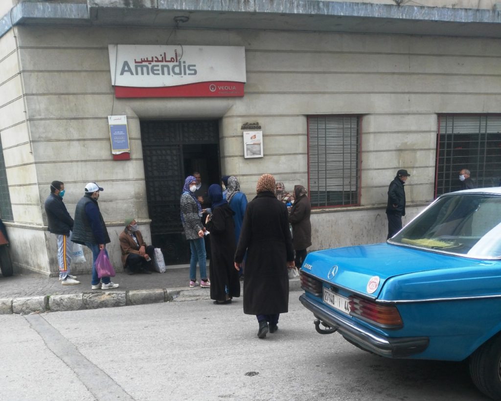وفي نفس السياق، فقد عرفت كل من شركة “أمانديس” المفوض لها تدبير الماء والكهرباء تجمهر العشرات من المواطنين على بابها في انتظار تأدية فتواترهم كما هو ظاهر في الصورة، دون أي تدخل من القائد أو رجال القوات المساعدة التابعين لملحقة مولاي المهدي.