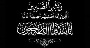 بسم الله الرحمن الرحيم ” يَا أَيَّتُهَا النَّفْسُ الْمُطْمَئِنَّةُ ارْجِعِي إِلَى رَبِّكِ رَاضِيَةً مَرْضِيَّةً فَادْخُلِي فِي عِبَادِي وَادْخُلِي جَنَّتِي ” صدق الله العظيم. تلقينا بقلوب مؤمنة بقضاء الله و قدره و ببالغ الحزن و الأسى خبر وفاة والدة “ محمد الفارسي ” رئيس فرقة الشرطة القضائية بالمنطقة الإقليمية للأمن بجرسيف. …