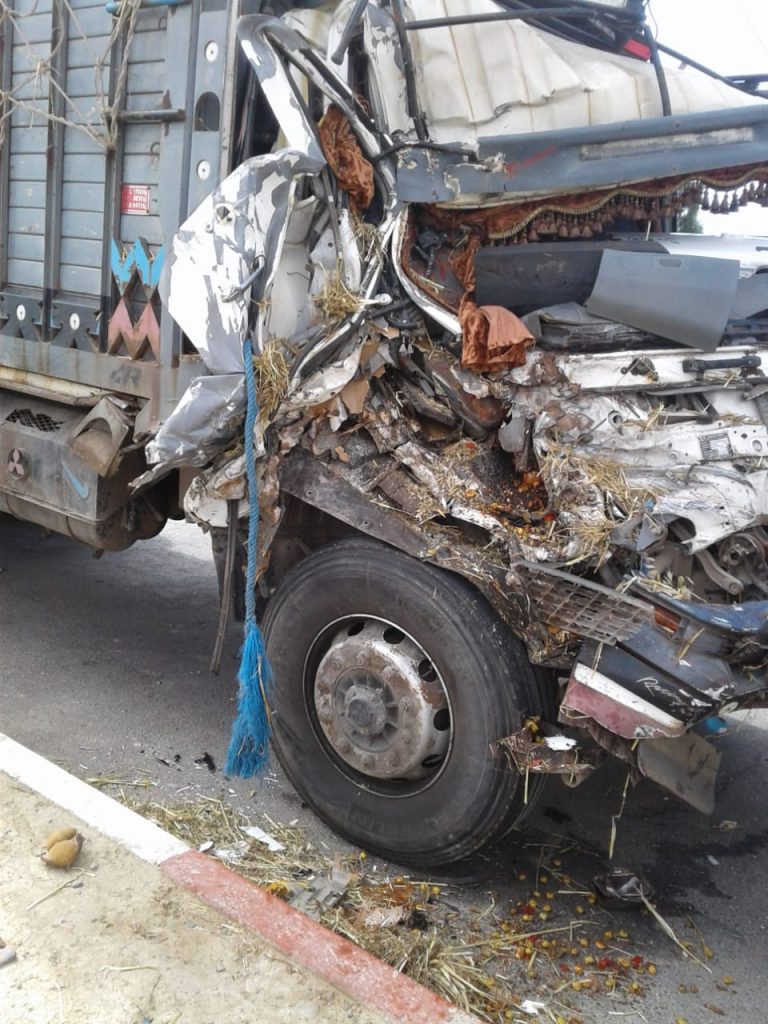 ووفق مصادر مطلعة، فتعود تفاصيل الحادث إلى اصطدام شاحنة محملة بالتبن بسيارة للدرك الملكي ثم شاحنة محملة بالبراميل، مما أدى إلى وفاة سائق الشاحنة المحملة بالتبن وإصابة 3 أشخاص آخرين.