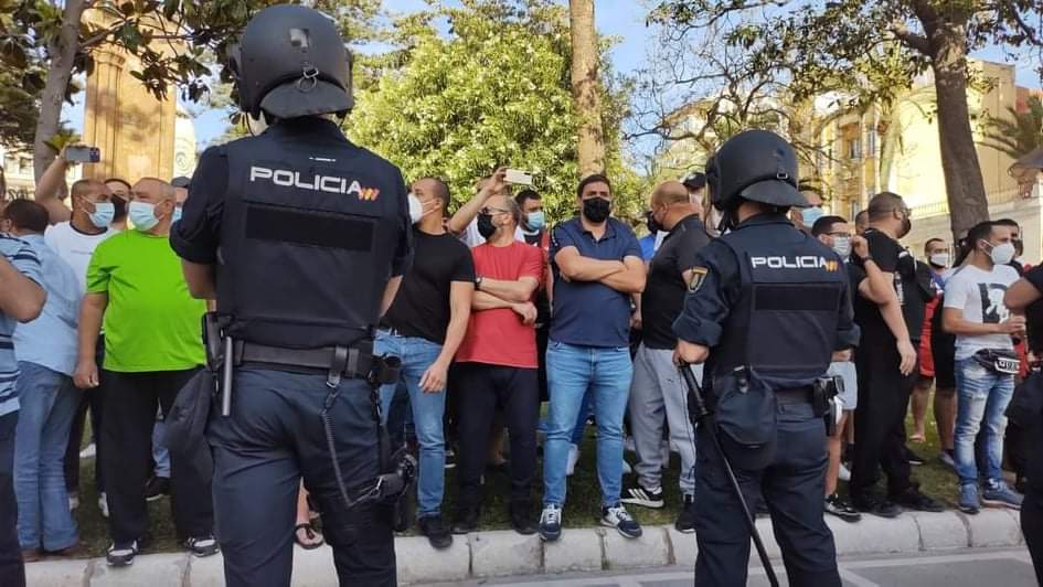 ورفع المحتجون؛ شعارات مناوئة لحزب “فوكس”؛ الذي يحمل مواقف معادية للمسلمين والمغاربة المتواجدين سواء في إسبانيا او سبتة المحتلة.