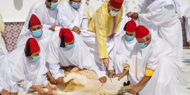 إثر ذلك، قام جلالة الملك بنحر أضحية العيد، اقتداء بسنة جده المصطفى صلى الله عليه وسلم، فيما قام الإمام بنحر الأضحية الثانية.