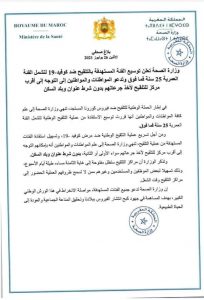 هذا وتدعو وزارة الصحة جميع المواطنات والمواطنين وخاصة الفئات المستهدفة، إلى الإنخراط في هذا الورش الوطني الهادف إلى مكافحة الجائحة من خلال اكتساب المناعة الجماعية قصد العودة إلى الحياة الطبيعية.