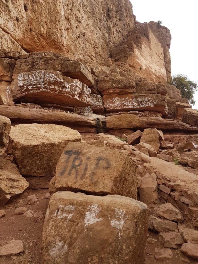 حيث قام الشخص مجهول الهوية بتلطيخ وبشكل عشوائي الصخور المحيطة ب “عين المحصر” بواسطة صباغة بيضاء وكذلك كتابة بعض الأسماء عليها مما أدى الى تشويه منظر المكان وسلب منه طبيعته الجمالية.