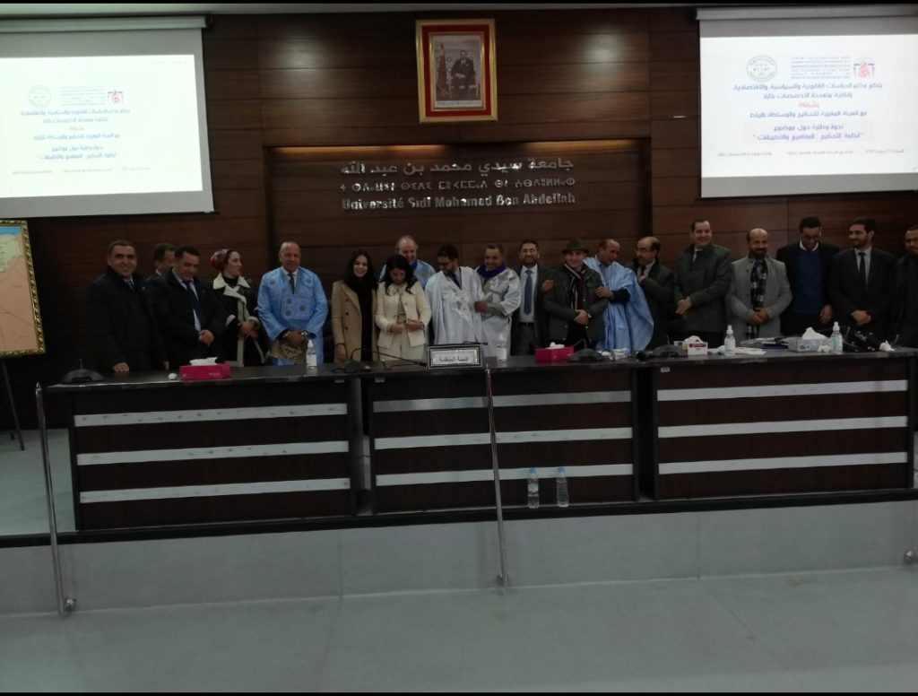 وبختام الندوة العلمية قامت اللجنة المنظمة بتكريم أستاذين بارزين على المستوى الوطني والخارجي ويتعلق الأمر بكل من الدكتور محمد تكمنت محامي بهيئة الرباط واستاذ جامعي، والدكتور أسامة عبد الرحمان أستاذ التعليم العالي بكلية العلوم القانونية والاقتصادية والاجتماعية بوجدة.