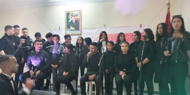 وافتتحت الأمسية الإحتفالية، بآيات بينات من الذكر الحكيم، ثم النشيد الوطني، لينطلق تقديم فقرات متنوعة، من بينها قطع مسرحية هزلية، سلطت الضوء عن العنف ضد المرأة، التحرش الجنسي، وزواج القاصرات، ثم وصلات غنائية، وذلك من إعداد وتقديم منخرطي جمعية الأفق.