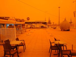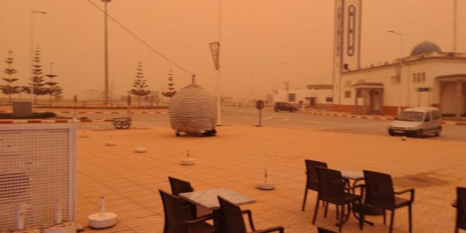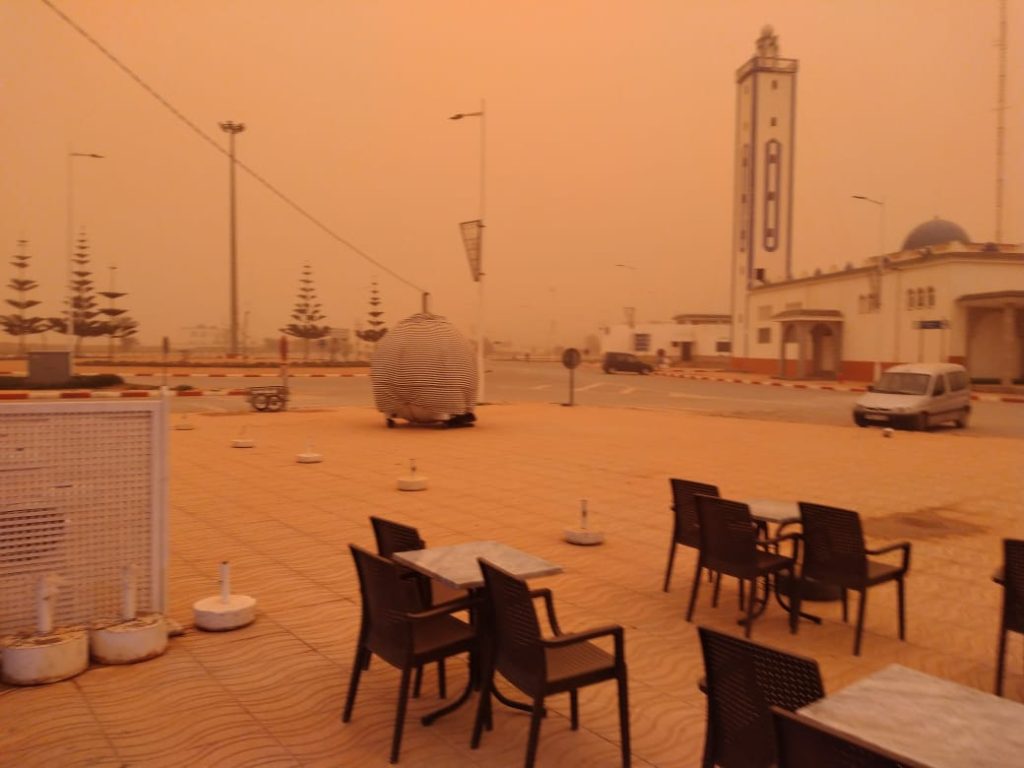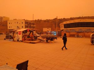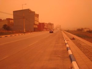 وانتاب، المنطقة جو أغبر في ظاهرة جوية غريبة وكأنها ضباب محمل بغبار أحمر ، عجاج أكدر ، جعلت الساكنة تحتمي بمنازلها ، رغم أن يوم الخميس يوم سوق في هذه المدينة .