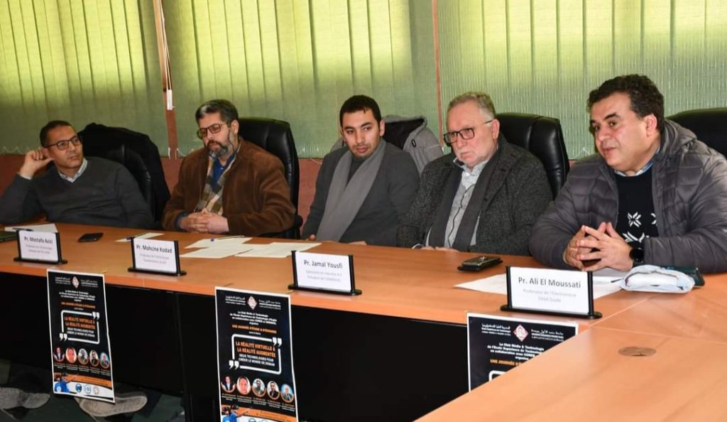 نظم طلبة نادي الاعلام والتكنولوجيا التابع للمدرسة العليا للتكنولوجيا بوجدة، زوال يومه الجمعة 25 مارس 2022، لقاء دراسي، خصص لمناقشة موضوع، تكنولوجيات الواقع الافتراضي والواقع المدعم كتكنولوجيات أساسية لبناء عالم الغد.