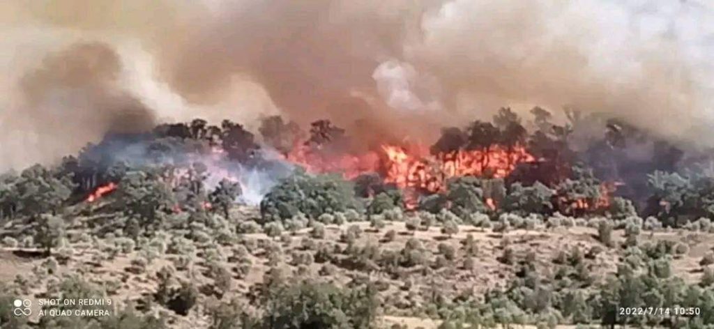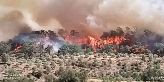 اندلع حريق مهول بغابة الخزارية بجماعة الصميعة بالقرب من المنتزه الوطني لتازكا، التابعة ترابيا لإقليم تازة، صبيحة اليوم الخميس 14 يوليوز الجاري.