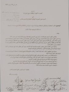 انعدام الوثائق على الميزانية وكيفية تصريفها رغم مراسلات النقابة وأعضاء المجلس (المرفق).