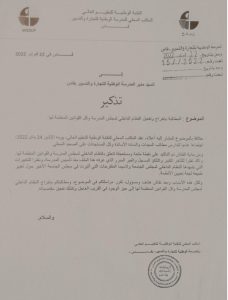 إلى الأجلاء السادة المحترمين : السيد وزير التعليم العالي والبحث العلمي والإبتكار، وكيل الملك لدى المجلس الأعلى للحسابات، المفتش العام للوزارة الوصية.