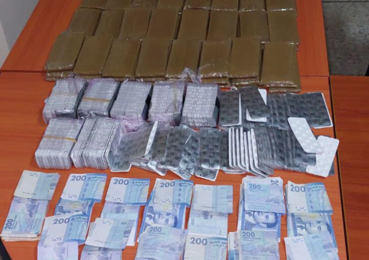 وقد جرى توقيف المشتبه فيه الرئيسي مباشرة بعد وصوله على متن سيارة خفيفة إلى مدخل مدينة مراكش، قبل أن تمكن عملية التفتيش المنجزة على متن هذه السيارة من حجز 5.400 قرص طبي مخدر من نوع “Rivotril”، فضلا عن حجز 7 كيلوغرامات و905 غرام من صفائح مخدر الشيرا المعدة للترويج.