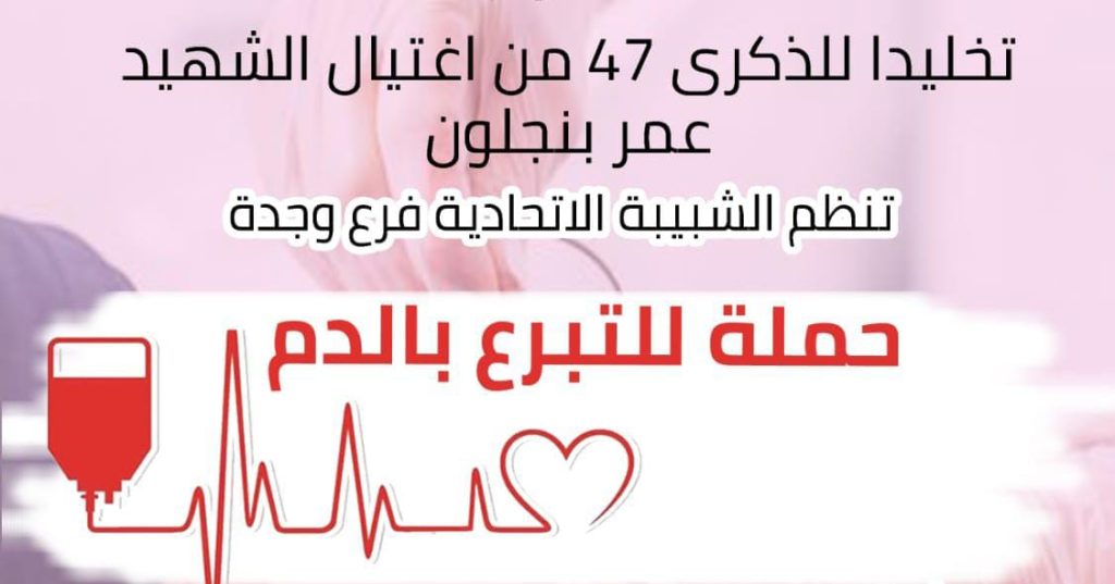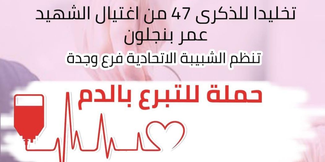 وإخلاصا لروحه الزكية وترحما عليها ستنظم الشبيبة الإتحادية بوجدة ، حملة للتبرع بالدم بشراكة مع Tahiti Team وجمعية المتبرعين بالدم بجهة الشرق وجدة ، والمركز الجهوي لتحاقن الدم بوجدة ، تحت شعار : {الشبيبة الإتحادية.. في خدمة الإنسانية } بمقر الحزب بشارع مراكش قرب البلدية صباح الأربعاء 25 يناير 2023 ، ودلك في إطار الأنشطة التي تنظمها الشبيبة الإتحادية بوجدة ، والتي تعتبر من أبرز المنظمات الشبابية على المستوى الوطني .