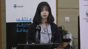بعد ذلك، أقيمت أمسية شعرية لفائدة شاعرات ومبدعات شابات، من المغرب والصين، شاركت فيها من المغرب الشاعرة أنيسة عيدون، التي حصلت على تنويه اللجنة في الدورة الأخيرة من مسابقة الديوان الأول للشعراء الشباب، التي تنظمها دار الشعر بتطوان. وشاركت إلى جانبها الشاعرة سامية دالي يوسف والشاعرة ابتهال المعرف من مدينة طنجة، التي لا يتجاوز عمرها 13 عاما، بينما لفتت إليها الأنظار في هذا الملتقى، وهي تردد في قصيدتها: سألوني عن وطني قلت/ إني من طينه نبتُّ. كحبيب مسكنه قلبي/ أو قلب فيه استوطنتُ. وطني أرقى أسمى من كل كلام ينتاب الروح فيعجزها كي يبقى الصمت. هو المعنى وطني معنى لا وصف يعنيه ولا نعتُ…”.