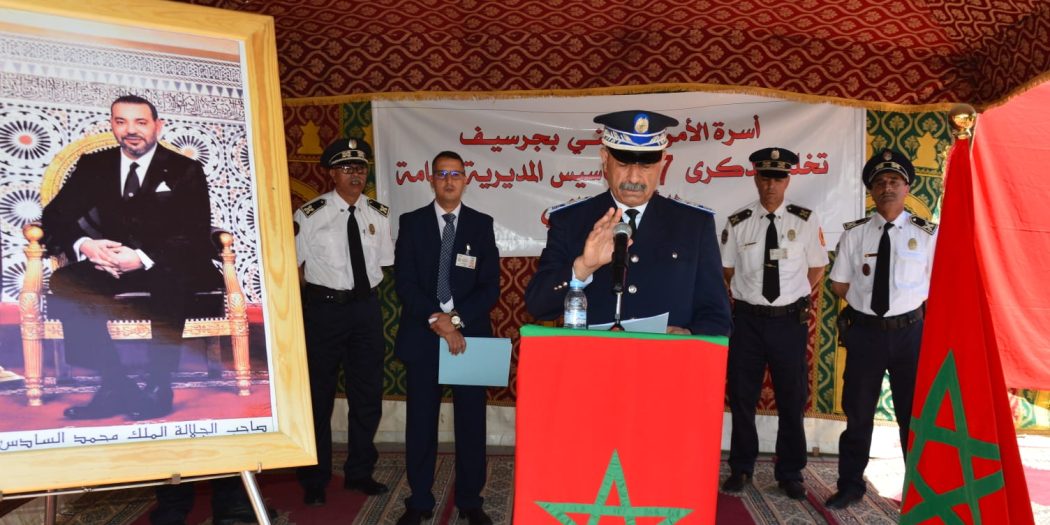 وقال عبد القادر أرعي رئيس المنطقة الإقليمية للأمن الوطني بجرسيف، أن تخليد هذه الذكرى، يعد استحضارا للروح الطيبة لجلالة المغفور له محمد الخامس طيب الله ثراه الذي بادر إلى تأسيس المديرية العامة للأمن الوطني سنة 1958، كما أن جلالة المغفور له الحسن الثاني طيب الله ثراه، سهر على تطوير الجهاز الأمني بالبلاد وجعله يرقى إلى مستويات عليا، ليكسب التحديات التي فرضتها تلك المرحللة بكل قوة وعزم.