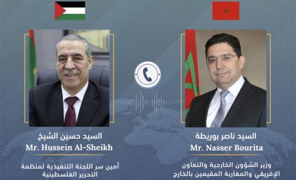 أجرى وزير الشؤون الخارجية والتعاون الإفريقي والمغاربة المقيمين بالخارج، ناصر بوريطة، أمس الأحد 15 أكتوبر، اتصالا هاتفيا، مع أمين سر اللجنة التنفيذية لمنظمة التحرير الفلسطينية، حسين الشيخ.