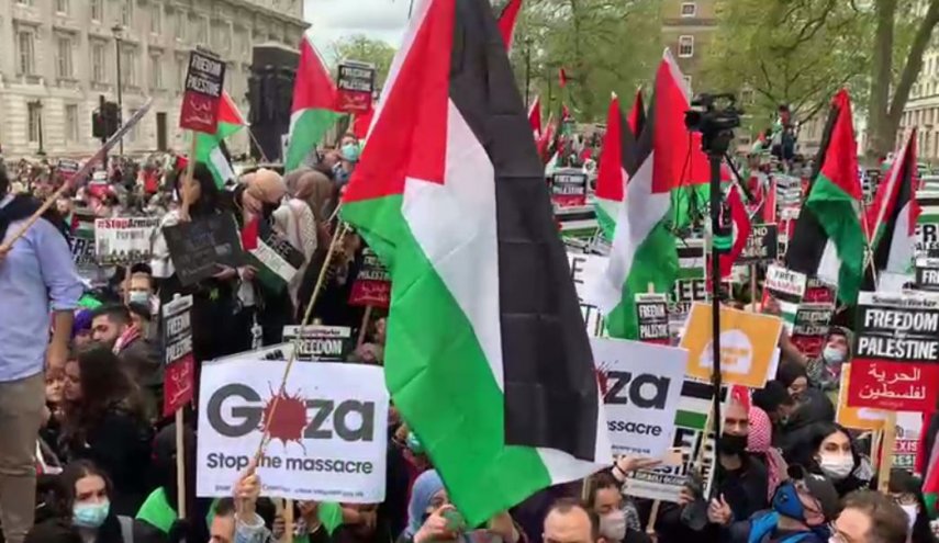 وذكرت وسائل إعلام بريطانية في وقت سابق، أن آلاف المتظاهرين المؤيدين للفلسطينيين احتشدوا في ميدان ترفلغار في لندن ورددوا شعارات داعمة للفلسطينيين ونصبوا بعض الخيام في الساحة، ورفعوا صورا لأطفال قُتلوا في القصف الإسرائيلي على قطاع غزة.