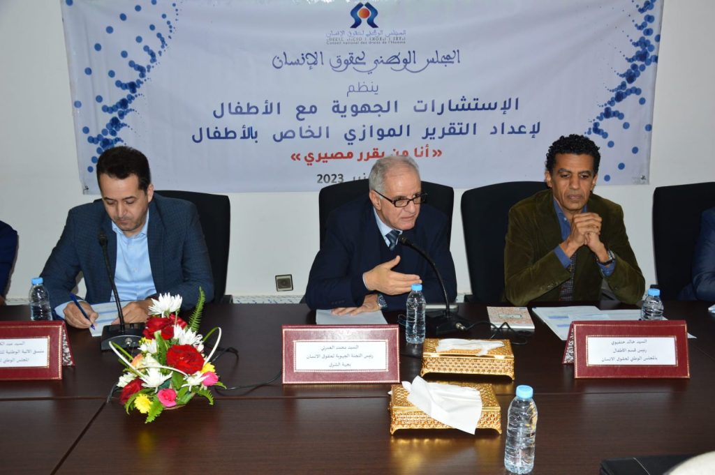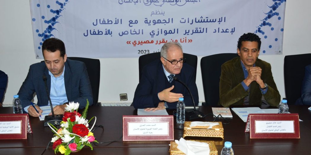 ويندرج هذا اللقاء التشاوري، الذي ينظم تحت شعار “أنا من يقرر مصيري”، في إطار الاستشارات الجهوية مع الأطفال التي أعطى انطلاقتها المجلس الوطني لحقوق الإنسان يوم ثالث فبراير الماضي بمدينة كلميم، لإعداد التقرير الموازي الخاص بالأطفال.