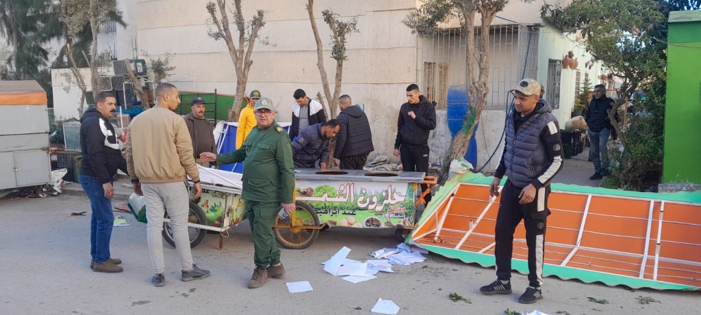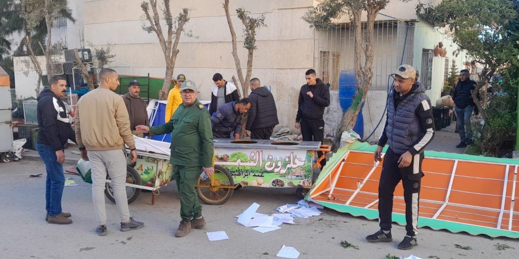 شنّت السلطات المحلية وعناصر من الشرطة الإدارية والقوات المساعدة وأعوان السلطة، اليوم 22 يناير 2024 ،حملة واسعة لتحرير الملك العمومي.