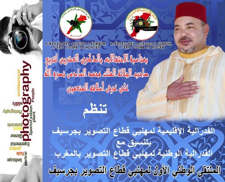 احتفالا بذكرى عيد العرش المجيد ، ستنظم الفدرالية الاقليمية لمهنيي قطاع التصوير بجرسيف بتنسيق مع الفدرالية الوطنية لمهنيي قطاع التصوير بالمغرب الملتقى الوطني الاول لمهنيي قطاع التصوير بجرسيف والاول من نوعه بجهة الشرق و تحت شعار : ” مهنة التصوير الإكراهات ، ورهانات التنمية المستدامة ” وذلك يوم الاربعاء 3 يوليوز 2019 بقاعة دار الطالب والطالبة جرسيف و سيعرف الملتقى ندوات تخص مهنة التصوير بالدرجة الاولى كما سيكون الضيوف مع مداخلات اخرى حسب البرنامج اسفله بصورة .