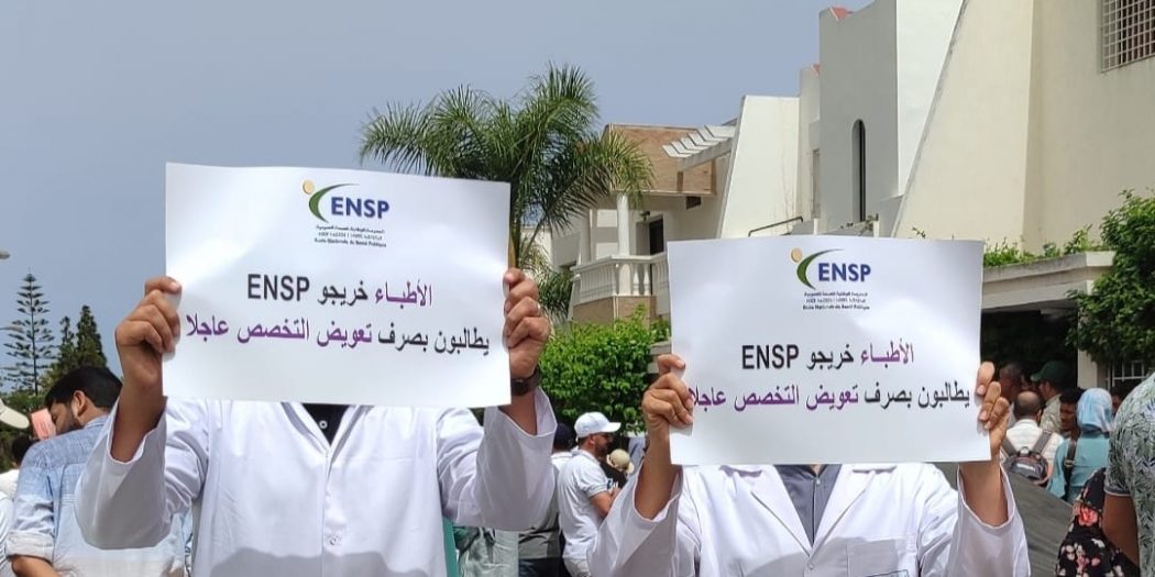 و سبق للأطباء خريجي ENSP أن نظموا وقفة احتجاجية أمام مقر الخازن الوزاري لقطاع الصحة، شهر رمضان الماضي، بتأطير من النقابة الوطنية للصحة العمومية العضو المؤسس في الفيدرالية الديموقراطية للشغل.