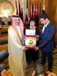 كرمت جامعة الدول العربية ممثلة برئيس مجلس الشباب العربي للتنمية المتكاملة الدكتورة مُشيرة أبوغالي، رئيس مجلس التنمية المستدامة والتعاون الدولي الدكتور علي بن إبراهيم السنيدي مُمثل المملكة العربية السعودية داخلياً وخارجياً.