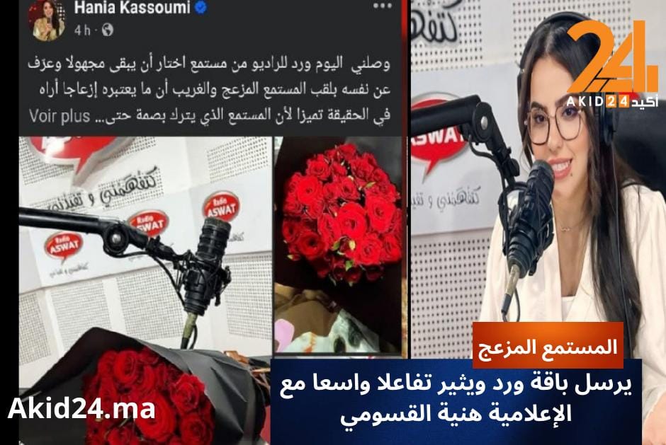 شهدت إذاعة “أصوات” يوم أمس موقفاً استثنائياً بعد وصول باقة ورد للإعلامية المغربية هنية القسومي، مرفقة ببطاقة من شخص اختار أن يعرّف نفسه بلقب “المستمع المزعج”، كتب فيها عبارة: “صوتك أجمل ما في الصباح، والأحمر هديتي لك.. مستمعك المزعج”.