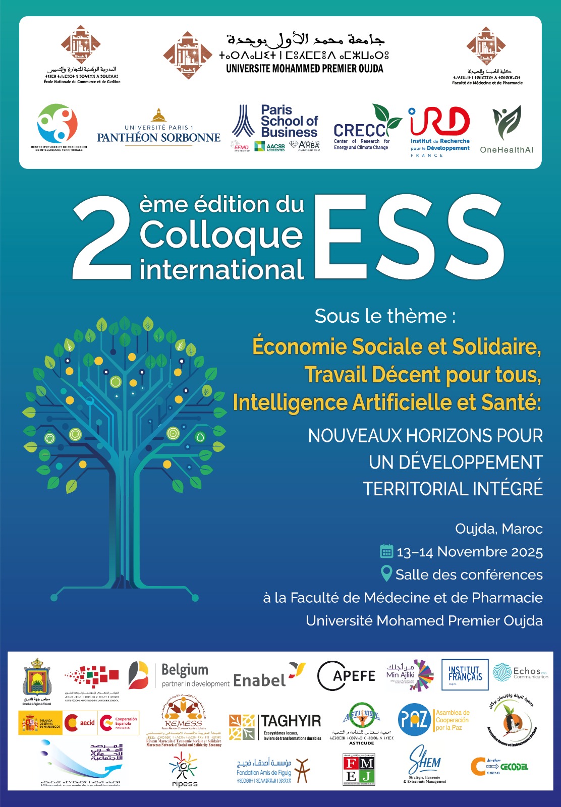 وجدة – تحتضن كلية الطب والصيدلة بجامعة محمد الأول بوجدة، يومي 13 و14 نونبر 2025، أشغال الدورة الثانية للمؤتمر الدولي للاقتصاد الاجتماعي والتضامني، تحت شعار “الاقتصاد الاجتماعي والتضامني، العمل اللائق للجميع، الذكاء الاصطناعي والصحة: آفاق جديدة لتنمية مجالية مندمجة”.