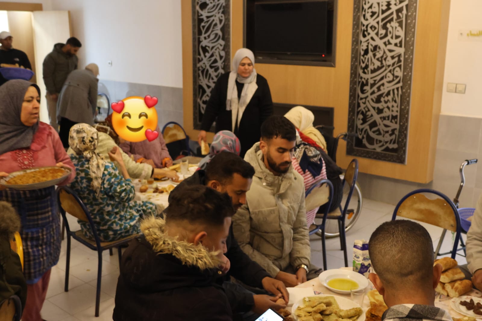 وتخلل حفل الإفطار فقرة للسماع والمديح، أضفت أجواء روحانية خاصة، عززت مشاعر الألفة والانتماء، وأدخلت البهجة إلى قلوب نزلاء ونزيلات المركز، بالإضافة إلى الحناء والحلاقة.