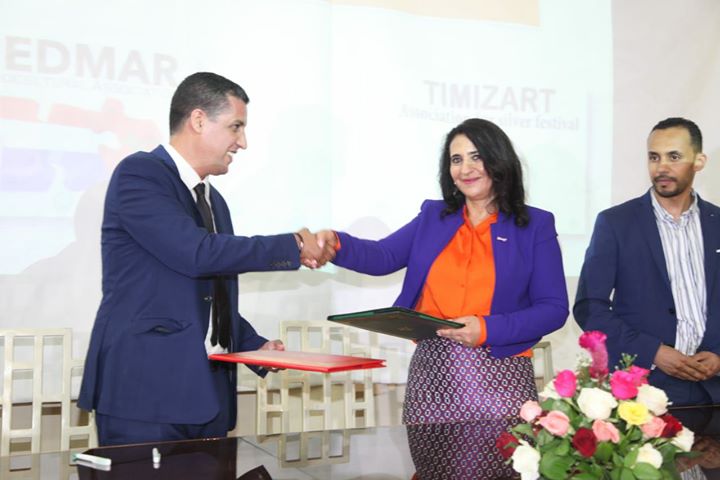أختتمت يوم الاثنين 23 يوليوز 2018 فعاليات مهرجان تيميزار الفضة بمدينة تيزنيت المغربية، و عرفت هذه الدورة مشاركة وفد هولندي برئاسة السيدة مليكة لمريض أبنة مدينة زايو رئيسة جمعية نيدمار للتقافة بهولندا و بحضور حرفيين هولنديين في مجال صياغة الفضة.و تخللت هذه الدورة مجموعة من الانشطة الثقافية و الفنية. و تبادل اعضاء الجمعيتين عدة افكار و مقترحات من شأنها تطوير الصناعة الحرفية في صياغة الفضة و تميزت بعقد شراكة و تعاون بين جمعية تيميزار الفضة بتيزنيت و جمعية نيدمار للتقافة بمدينة شخونهوفن بمملكة هولندا.و من جانب آخر اثنى رئيس جمعية تيميزار الفضة السيد “عبد الحق ارخاوي” عبر مختلف المنابر الاعلامية محلية و وطنية و دولية، على اهمية هذه الشراكة في ترويج المنتوج المغربي في هولندا و التعريف بمهاراة الصناع التقليديين في مجال الفضة و مجالات اخرى.كما عبرت السيدة مليكة لمريض عن سعادتها بإبرام هذه الاتفاقية التي تدخل في اطار تسويق الصناعة التقليدية المغربية و لم تخف امتنانها عن حسن التنظيم و حفاوة الاستقبال من لدن منظمي مهرجان الفضة بتيزنيت.كما ارسلت رسالة شكر و افتخار لجل اعضاء جمعية تيميزار الفضة بتيزنيت. منوهة بدور المرأة المغربية في الابداع بمجالات حرفية مختلفة كالفضة و القفطان المغربي …، بالاضافة للى ذلك احيا مجموعة من الفنانين المغاربة انشطة و سهرات فنية في المنصة المخصصة لذلك.