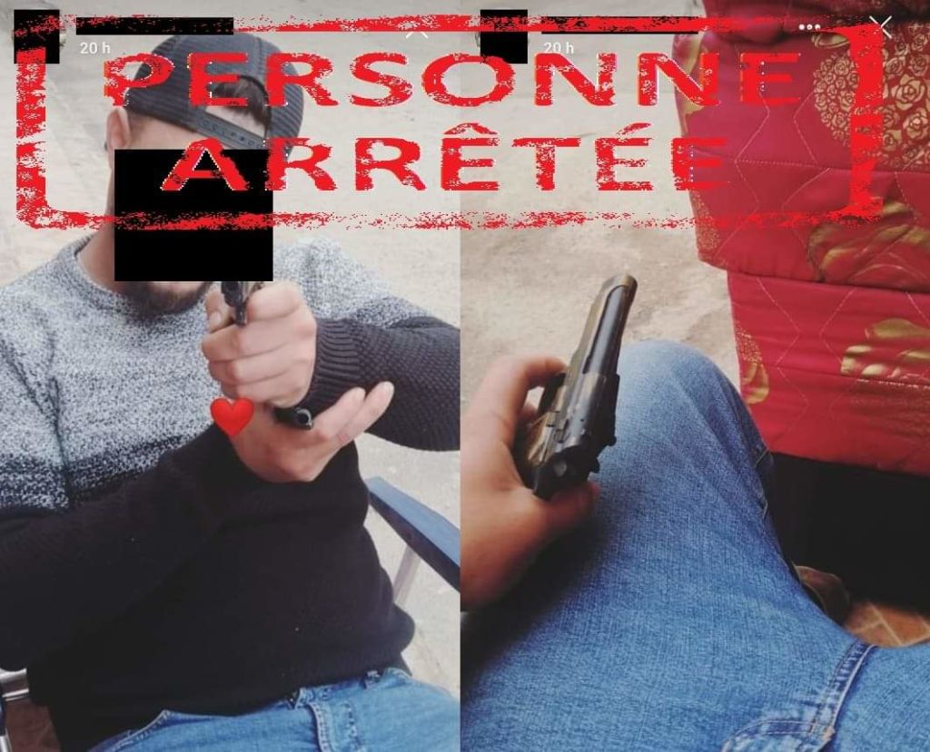 وقد كان المشتبه فيه قد نشر صورا فوتوغرافية على حسابه في أحد مواقع التواصل الاجتماعي على الأنترنيت، يظهر فيها وهو يحمل مسدسين، وذلك في ظروف من شأنها المساس بأمن المواطنين وسلامتهم، حيث تبين من خلال الأبحاث والتحريات المنجزة أنهما مجرد لعبتين من البلاستيك.