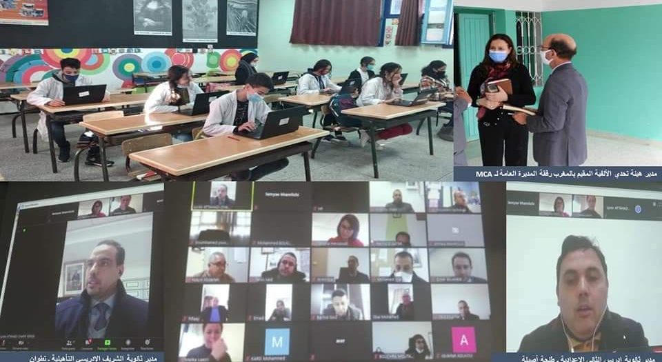 في إطار تنفيذ مشروع “التعليم الثانوي” المندرج ضمن “الميثاق الثاني” للتعاون بين المملكة المغربية وحكومة الولايات المتحدة الأمريكية، الذي يروم الرفع من قابلية تشغيل الشباب المغربي من خلال تحسين جودة وملاءمة التعليم الثانوي بسلكيه الإعدادي والتأهيلي والإنصاف في الولوج إليه، عرفت أكاديمية جهة طنجة تطوان الحسيمة، يوم الأربعاء المنصرم تنظيم لقاء لفائدة مديري المؤسسات التعليمية المعنية بالمشروع، من خلال تقنية المناظرة الرقمية، تحت رئاسة السيدة مليكة العسري المديرة العامة لوكالة حساب تجدي الألفية- المغرب-، بمعية ذ محمد عواج مدير الأكاديمية الجهوية للتربية والتكوين لجهة طنجة تطوان الحسيمة، لتقاسم التجارب والخبرات المتعلقة بتنزيل مشروع المؤسسة المندمج وكذا تقوية التشبيك بين هاته المؤسسات. وقد عرف هذا اللقاء مشاركة مدراء إقليميين ورؤساء أقسام ومصالح، بالإضافة إلى مسؤولين عن وكالة حساب تحدي الألفية-المغرب.